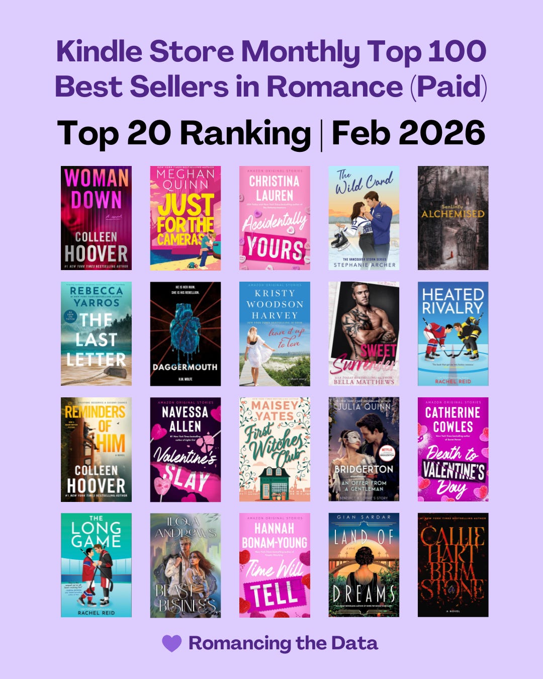Without further ado, here is the February 2026 Amazon Kindle Store Top 100 Best Sellers in Romance (Paid) analysis, in partnership with market research newsletter Kindletrends.
