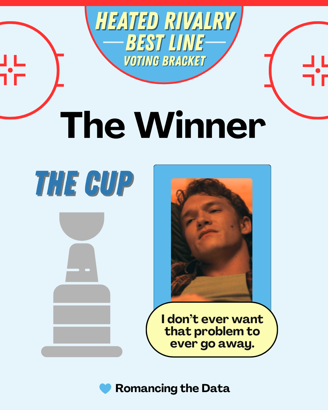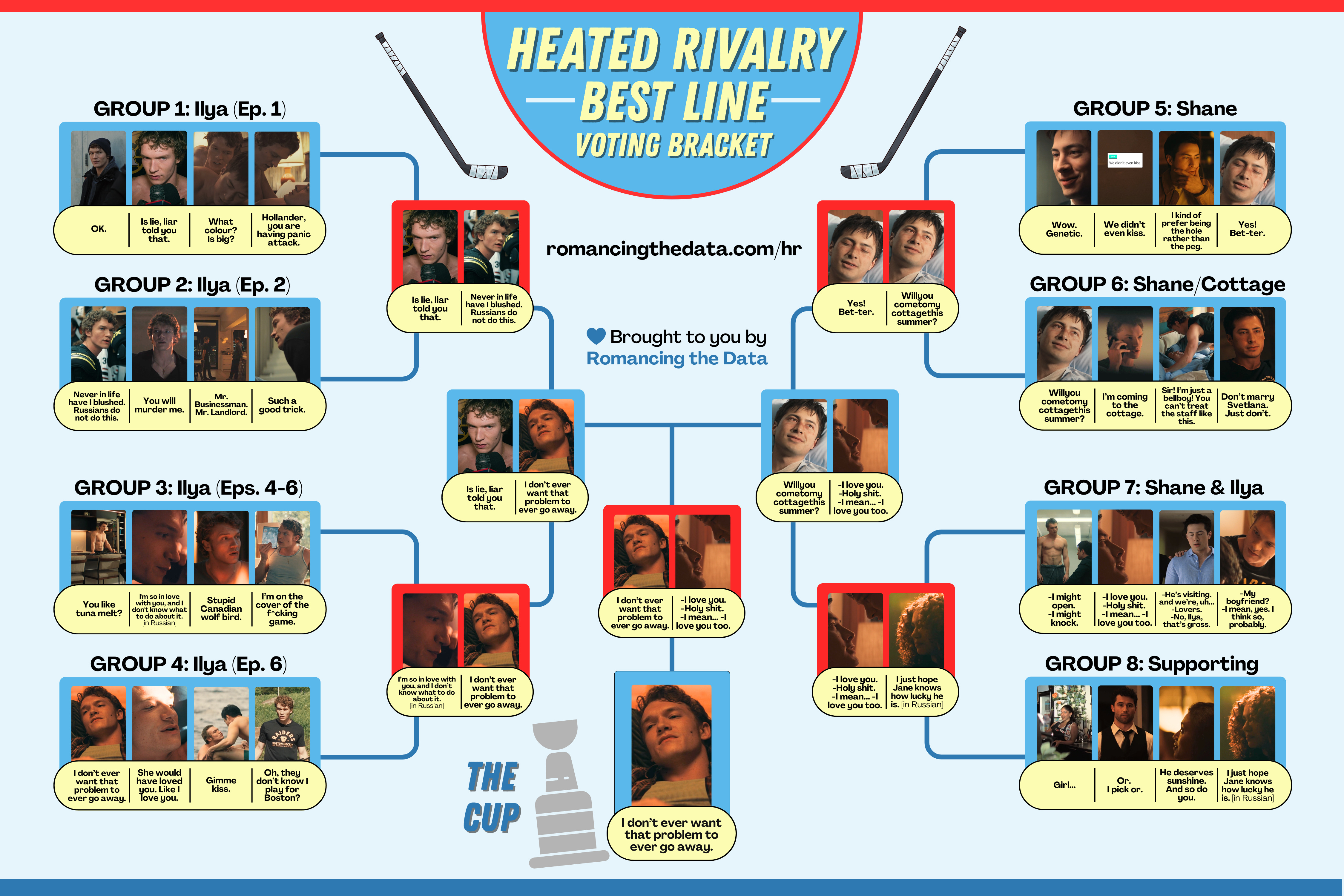 From the ice to the cottage, the smash hit TV adaptation of Heated Rivalry has brought us so many iconic lines. To celebrate all this romance goodness, I’m hosting a Heated Rivalry Best Line Voting Bracket from February 18 to March 4 to determine the best line from Season 1.