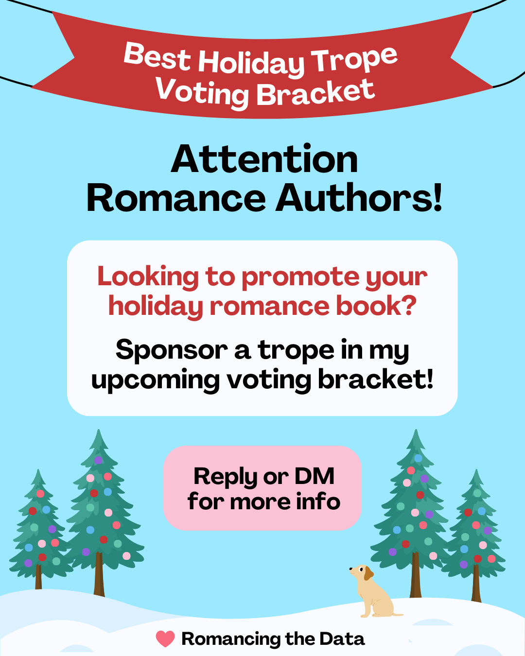 ATTENTION AUTHORS: Are you looking for a unique way to promote your holiday romance book? Consider sponsoring a trope in my upcoming Best Holiday Trope Voting Bracket in December! 🎄❄️☃️🎁